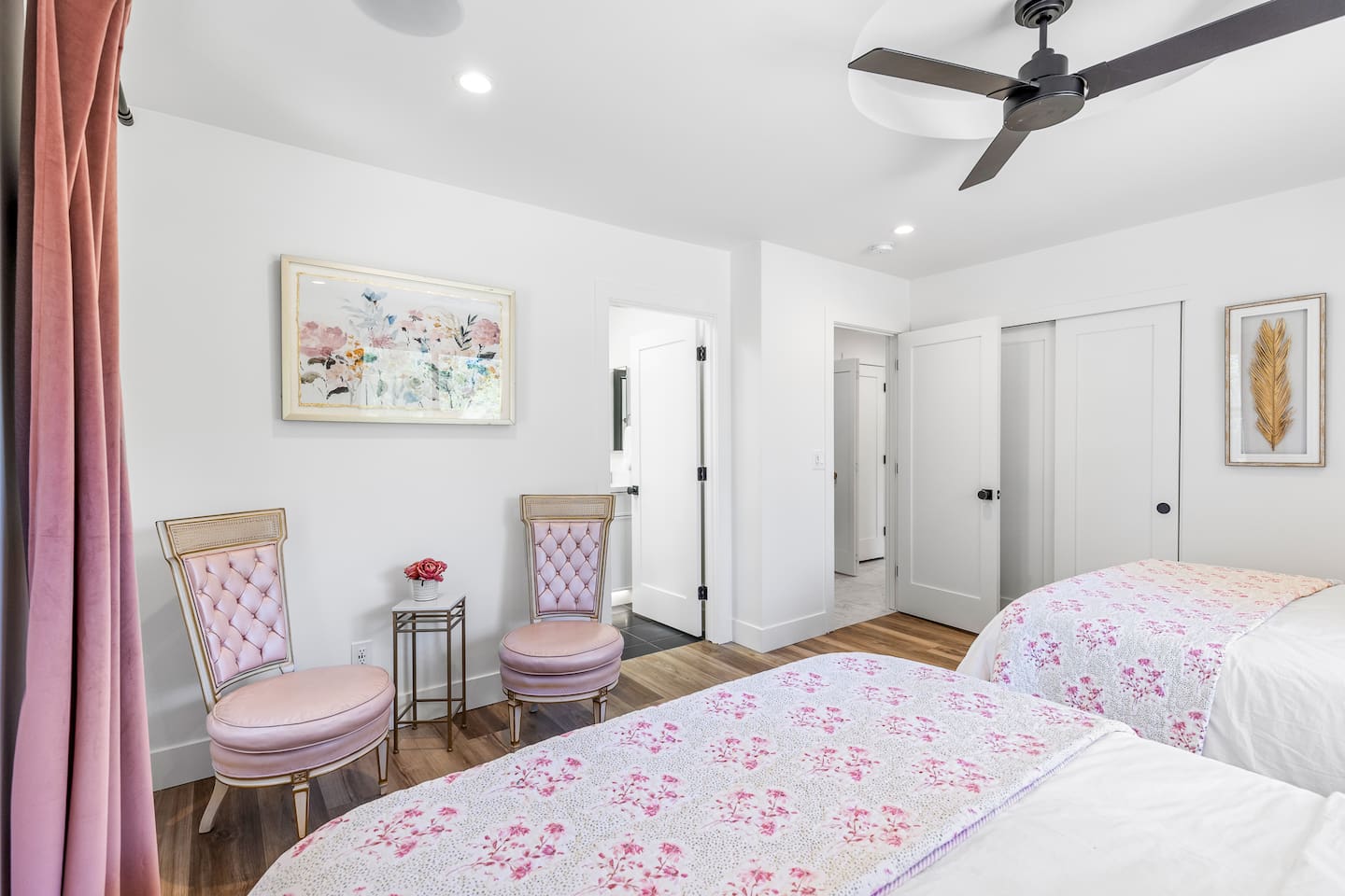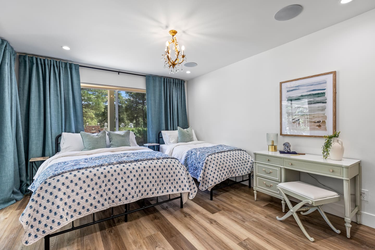 – 1 King bed, 2 Sleeper Sofa/Futons